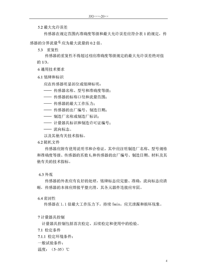 《氣體層流流量傳感器檢定規程》JJG7 36- 20XX