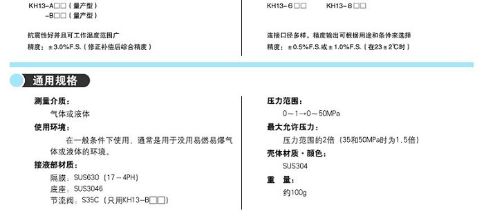 本產品采用真空蒸發式半導體應變片,適合測量油或水的壓力,廣泛用于建筑機械和汽車等行業。